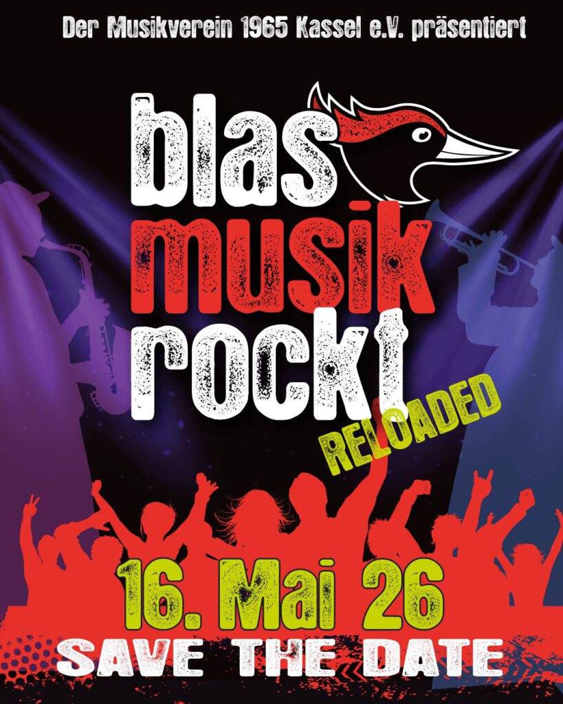 Mit Unterstützung von Sängerinnen, Sängern und Band präsentiert das Stammorchesters des Musikverein 1965 Kassel ein bunt gemixtes Programm von Klassik bis Pop! Markiert euch den Termin am 16. Mai fett im Kalender und seid dabei wenn es wieder heißt „Blasmusik rockt – von Klassik bis Pop“!
